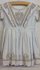 A child's cotton dress with braided decoration.
