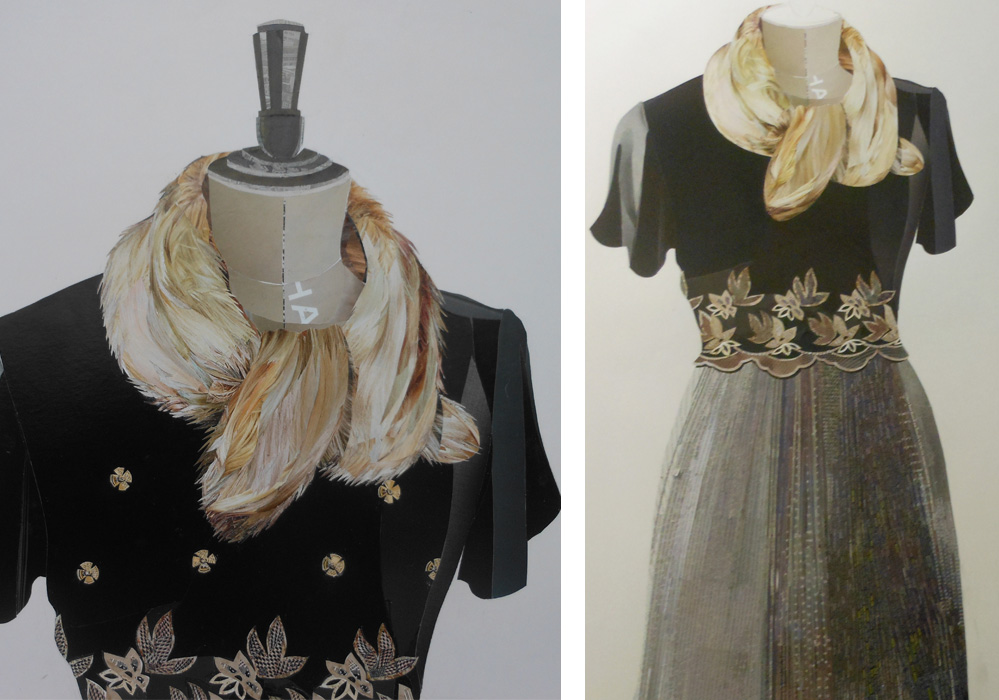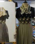 WORK 2014 THE EMBROIDERED DRESS A black embroidered bodice with a contrast fabric skirt. The date of this dress is uncertain